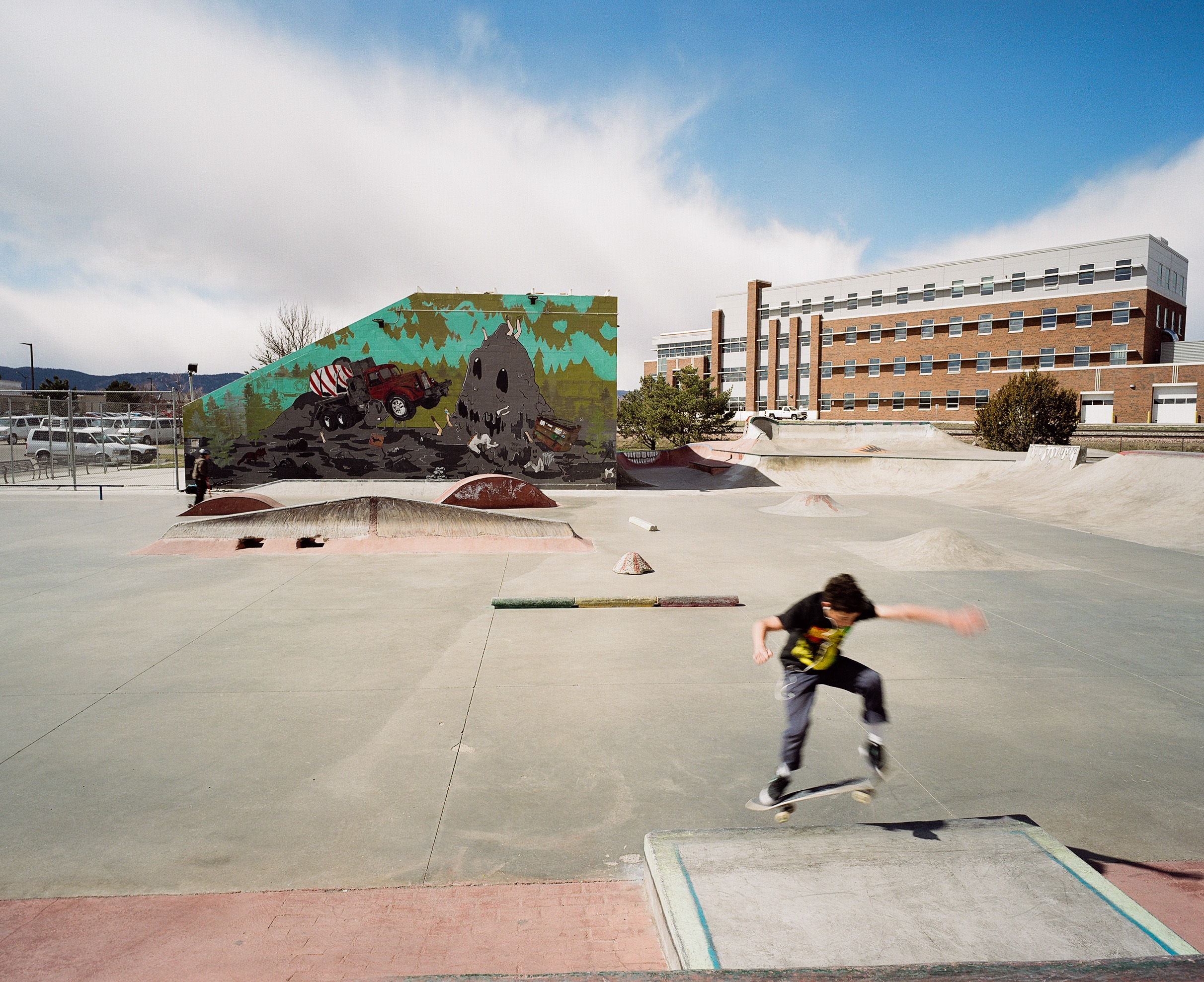 My favorite shot from this roll! I used a slow-ish shutter speed to give some blur to the skateboarder but also retain enough sharpness that his figures would be recognizeable. I focused at just inside the hyperfocal distance in order to ensure that the whole scene was sharp. I had to pre-focus because I wouldn’t have been quick enough to focus on the subject as he entered the frame. As with the other images in this roll, I dropped exposure and added contrast in Lightroom.