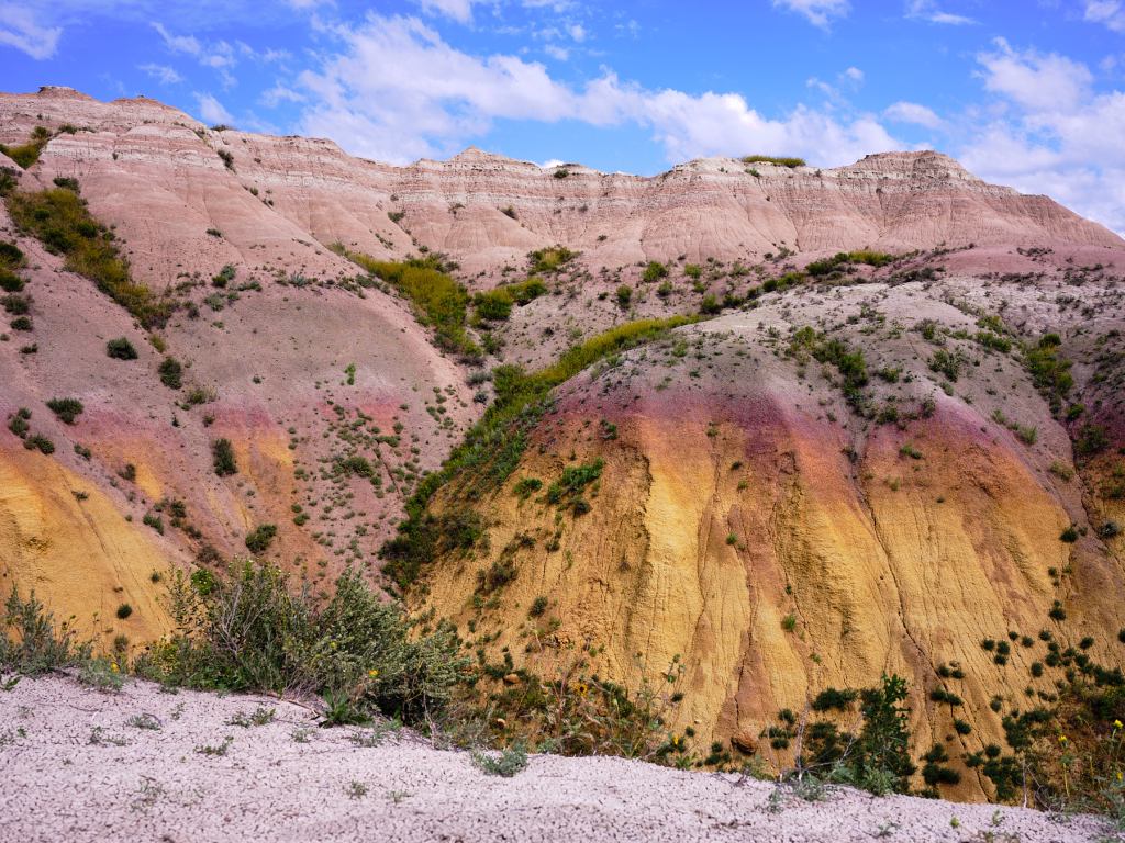 On my way back from a work conference about a month ago I took a detour through South Dakota’s Badlands National Park. I didn’t have too much time, unfortunately, so I was only able to do a few quick hikes and (mostly) daytime explorations. I wouldn’t have minded a few more days to work some different locations for sunrise/sunset and maybe even do a little astrophotography (I scouted a really cool spot for astro, but unfortunately the timing of the milky way was off and it wouldn’t rise/rotate until pre-dawn when it’d be too light), but all things considered this was a pretty good park to visit being short on time. There’s not a whole lot of hiking/backpacking you can do in that area, and it seems like the best views/photography spots can be accessed by car.