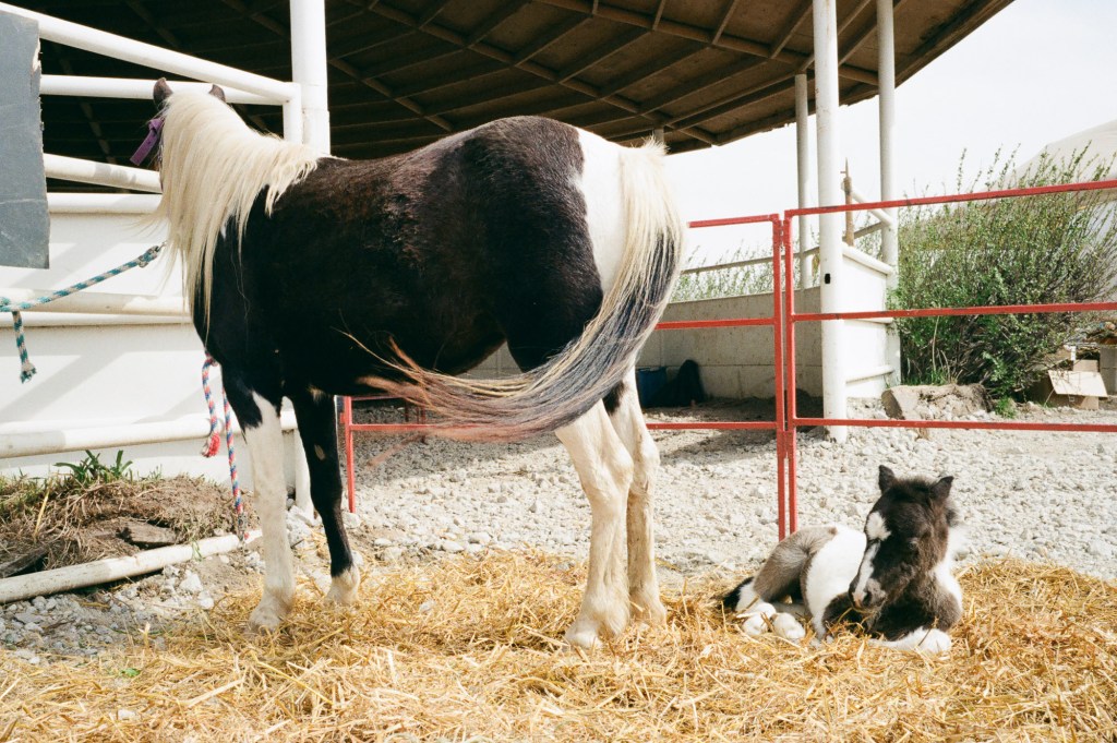 - i waited for like 5 minutes for the mamma horse to turn around so i didn’t have to shoot her ass hovering over her foal. she didn’t. thus i have a picture of a cute foal and a horse’s ass.