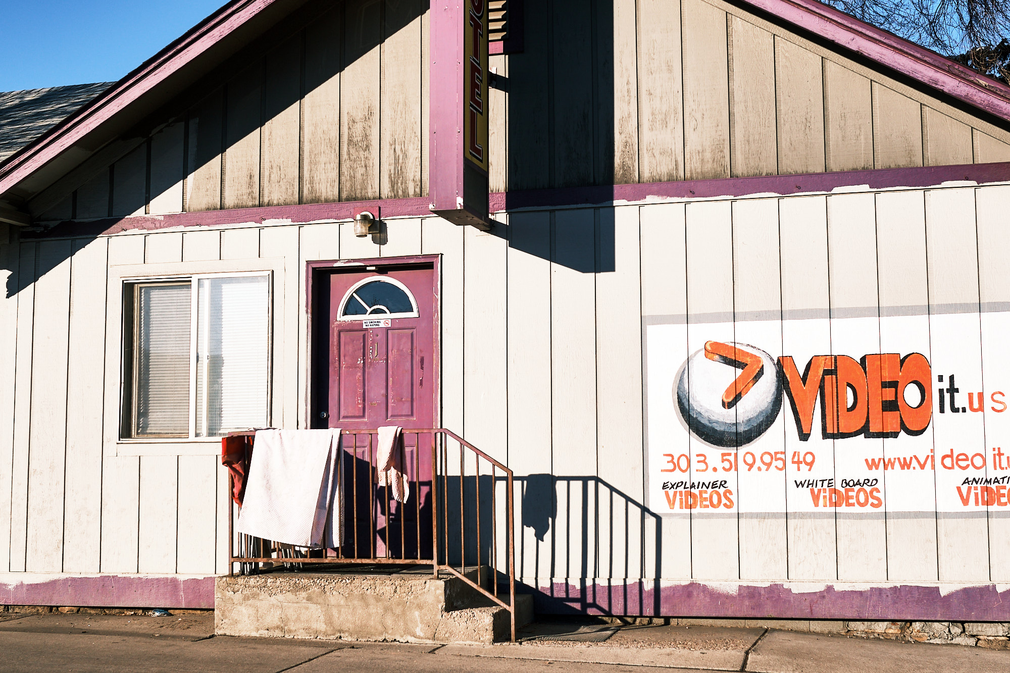 This image is just a snapshot from the car. Ever since living in Omaha, I’ve been drawn to unusual scenes like this. There’s so much to get lost in when looking at this image. What even is it? A motel? A video store? Why are there rags/towels hanging over the railing? And my goodness how long has it been since this place had a proper paint job?!