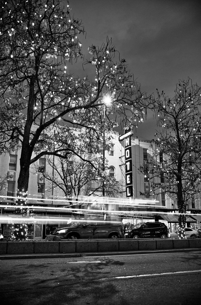 This image is actually a stack of two photos I took near the end of an evening photo walk in downtown Fort Collins. I didn’t have a tripod, so to get the desired outcome of the majority of the scene being sharp with blurred car headlight streaks intersecting the bottom portion of the frame I needed to take to photos. The base image was taken with a relatively wide aperture and a high ISO (well, high for most cameras…not very high for the Leica M10M) in order to maintain a fast enough shutter speed to prevent noticeable blur in the trees, hotel, street, etc. Thanks to the Leica M10M’s great low light capability, I didn’t have to make too many compromises in the aperture and shutter speed dimensions. For the second image, I simply set the ISO to the lowest level of 160, dropped the shutter speed to 1 second, and waited for some cars to drive by.